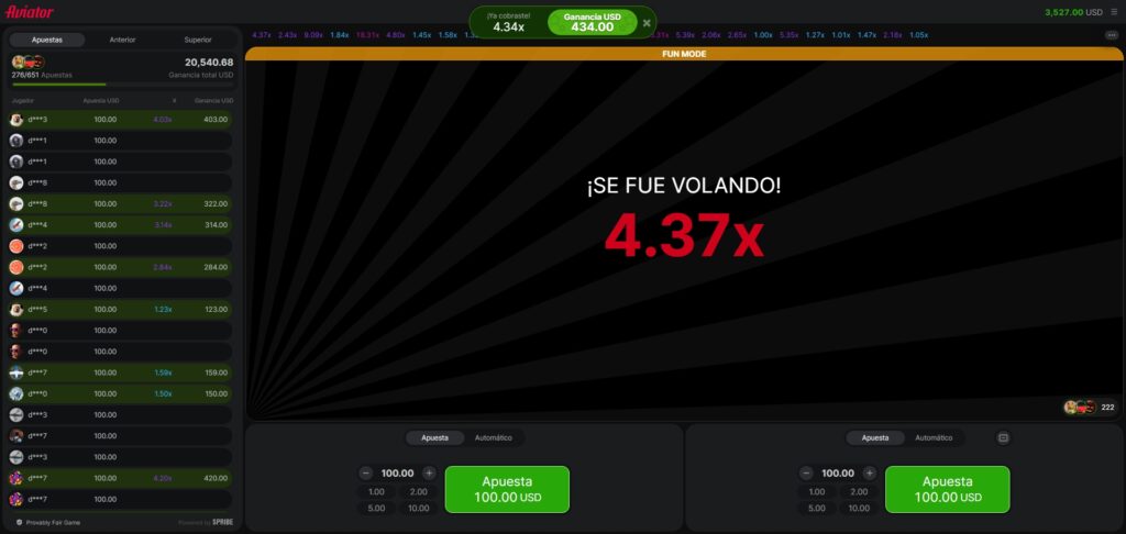Aviator, diseñado por el proveedor de juegos Spribe, se distingue por sus mecánicas de juego sencillas y atractivas. En el juego de casino Aviator, los entusiastas se reúnen en una comunidad dinámica. Esta experiencia de juego ofrece una combinación única de emoción y compañerismo. Los jugadores pueden interactuar a través de un sistema de chat, participar en emocionantes torneos llamados “aviarace” y disfrutar de promociones como la “lluvia” de apuestas gratuitas. Spribe asegura una experiencia justa y dinámica, proporcionando estadísticas en tiempo real y una función de cobro automático, lo que mantiene el interés de los jugadores en todo momento. Utilizando Provably Fair technology, la transparencia y equidad del juego están garantizadas, generando confianza entre los jugadores.